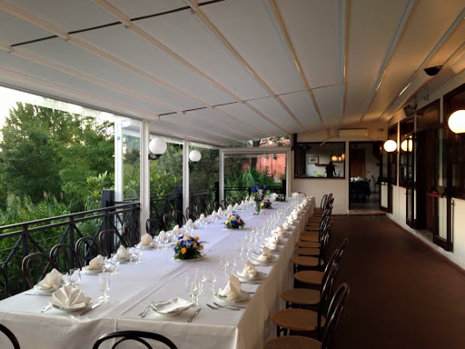 The restaurant is spacious and features various spaces, including dining rooms and an area overlooking the Tiber.