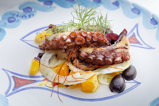 I found this restaurant by searching online. It's not in the center of town, but it's easy to get to. The location is beautiful and romantic (in the courtyard). The cool evening and the wind, however, encouraged us to sit inside in the former convent refectory. The place is a bit cold, having no furniture other than the tables. Service was quick and the staff were friendly. I enjoyed a very enjoyable meal with local appetizers and baked sea bream. Everything was very good. Excellent value for money. Definitely worth a try.