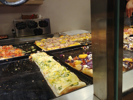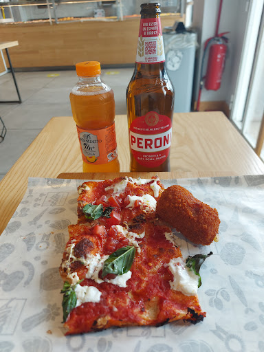 Excellent pizzeria located near Ciampino station. Wide variety of pizza by the slice (the classic pizza found in Rome), I must say very good. It's a shame that if you don't let them know you want it reheated, they'll serve it cold. You can eat inside, but I'd recommend changing the tables because they're too unstable; just lean a little harder on the table and the whole place will tip over. Overall, a good place...