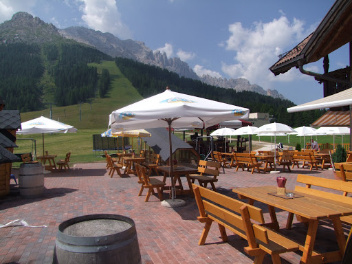 Excellent pork shank, spaghetti with giant chanterelles, delicious desserts, and a refined cuisine featuring traditional dishes and a few more options than the local mountain huts and restaurants. The beautiful, well-renovated restaurant, built in stone and wood, is bright and airy, with a view of the Latemar meadows and parking right in front of the entrance.
