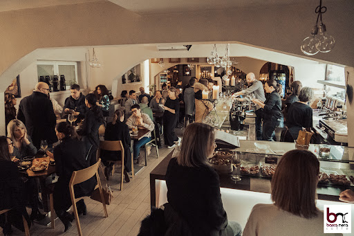Aperitif in a lovely setting, with seating both inside and outside. The interior is well-kept and welcoming, and the staff is very friendly and happy to recommend the wines they offer. They are knowledgeable and offer a more than good selection of wines. The accompanying cicchetti are refined and high-quality. We will definitely be back.