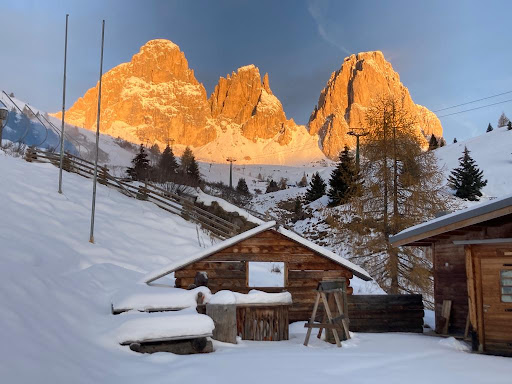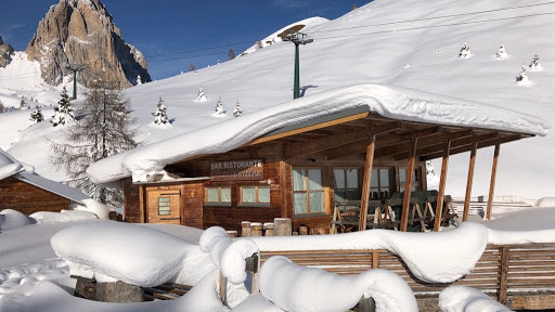 After getting hit, fixing game over, we stopped at this closest chalet, and Madame Delia very kindly offered to lend me a pair of skis to go to Canazei. We went back for lunch and we ate very well, very friendly staff and no wait.