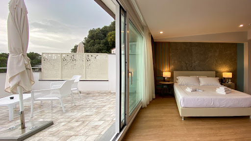 We stayed two nights. The hotel was clean, the room very large, and the terrace was lovely, complete with a table, chairs, and two loungers.