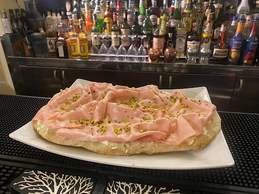 The place offers a variety of cocktails and delicious food like pinsa or platters.