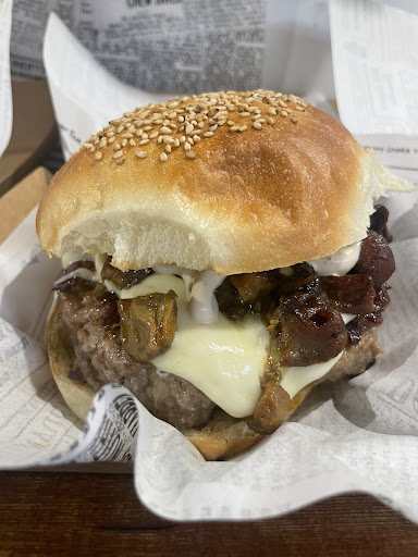 Excellent food; I tried the burger and was pleasantly surprised: juicy meat, light bun, and perfectly cooked bacon.