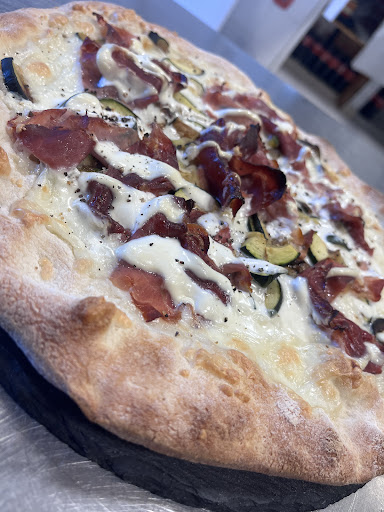 I was looking for a takeout pizzeria in the area and found this one. Besides the usual pizzas, they also offer various sweet and savory schicciate, both very good. We had a sweet and a savory one, both very good. However, I didn't really like the vegetable pizza because it had too many vegetables, a bit random and heavy. In the end, we paid €23. My only advice: be patient, because they run over the agreed-upon times.