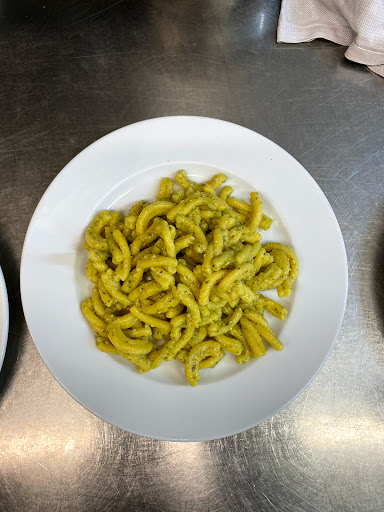 Wonderful spot for some authentic homemade pasta along the coast. We had the lunch menu, which included a plate of mixed bruschette, a primi of your choice, water and coffee all for 15 euros. Bruschette were freshly prepared and crisp, with a buttery cheese spread, a soft cheese with roasted zucchini, pomodori freschi, and the last with roasted peppers. The pasta was fresh and there was plenty—we tried the cacio e pepe and the chitarra with polpettine—both excellent. Great prompt, friendly service. Bathroom was very clean. Would recommend highly