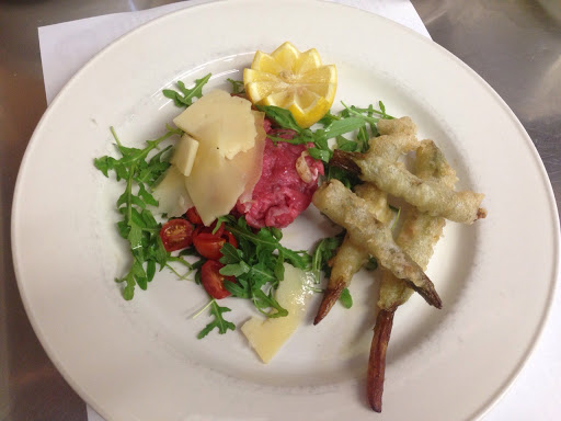 We tried the pizza, made with sourdough, light and fragrant, and the Black Angus steak, served with baked potatoes. The meat was tasty and perfectly cooked. All washed down with a good red.