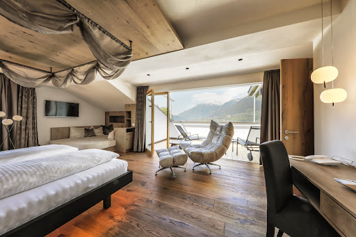 Large, bright, comfortable suite with Physio Therm/infrared cabin, minibar, safe, and Nespresso machine (coffee €1.50).