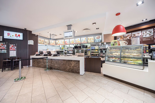 The fast food restaurant in question is located inside a gas station.