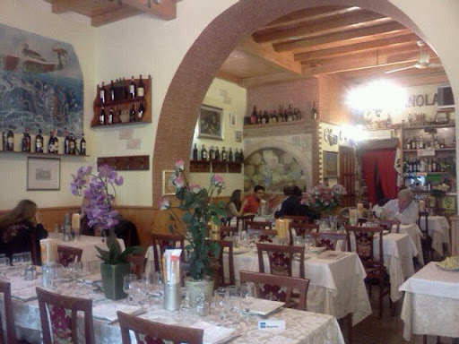 My good friend recommended this restaurant for its friendly service, and delicious seafood options for reasonable prices. Ever since then, it has become my go to spot whenever I come to Rome. What i especially like about this restaurant is that sometimes it has a special ingredient of the day like octopus. I recently was hoping for octopus but instead, there were beautiful Porcini mushrooms. Mushrooms were cooked in olive oil w a hint of garlic and parsely. They were so delicious. Spaghetti alla vongole, grilled seafood are always superb! The owner is very kind and everyone i met there are friendly.
