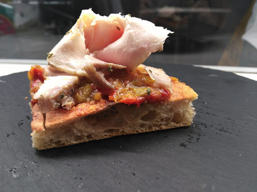 Discovered during our walk, this simple little restaurant delighted us. The super-friendly owner promotes organic wine and local produce. We tried the lunchtime tasting menu of various pizzas, and they were all excellent. Thank you, Roberta.