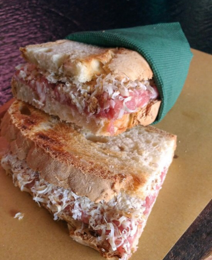 The bread used, as it should be, consisted of slices of normal-sized Tuscan bread, good and warmed properly before filling. With the holidays, it couldn't have been on a daily basis.