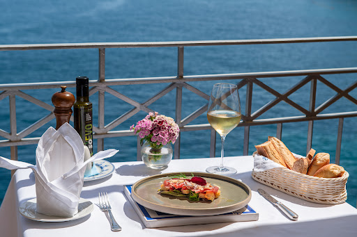 Very well-kept location, new and clean, with a very refined and original marine style decor. The view is obviously breathtaking, eating on the terrace with the sound of the sea below is priceless. The restaurant is inside a hotel structure, so the welcome, the turnout and the services are far superior to those of a common restaurant. Raw material of excellent quality, proportionate bills.