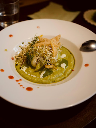 Beautiful atmosphere. We felt pampered and as for the food, it was prepared with care and, as always, with new ideas and excellent quality.