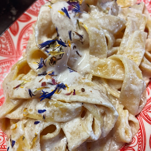 I stumbled upon it by chance while exiting the highway due to traffic. Don't let the vegetarian cuisine fool you. I had pici with lentil sauce, gratinated puntarelle, and cabbage flan. Everything amazed me with its fantastic flavor. Highly recommended.