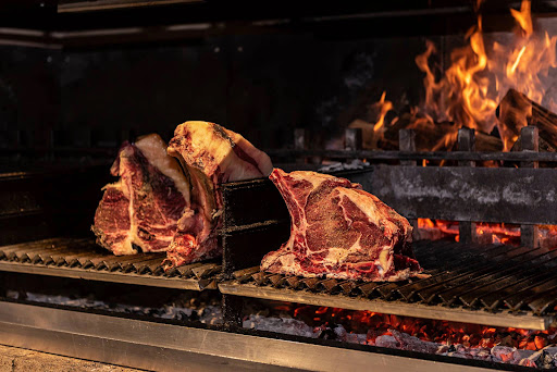 A Piedmontese Fassona rib-eye steak weighing approximately 1.4kg and a 1kg Angus rib-eye steak for a whopping €230 for meat alone.