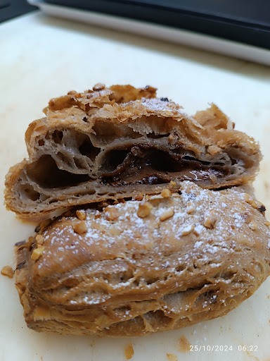 10/09/2024: Essendo stata di passaggio in Liguria non ho potuto rinunciare ad un salto a Recco in cerca della tipica focaccia. Siccome erano circa le 14 e molte panetterie erano già chiuse, mi è stato molto comodo l’orario continuato di questo forno. Ho assaggiato la tipica focaccia bianca al formaggio e anche quella rossa. Buone entrambe.