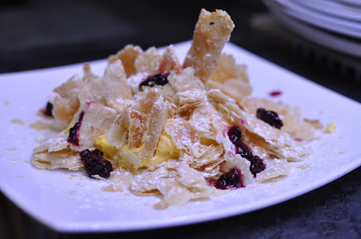 Really nice place, with a wood-fired oven and a meat counter. Even though the place was full, all orders arrived on time. The pizza was really good, thin and tasty. In the end we paid €96.70 including 2 portions of kebabs (delicious), 1 of chili, 2 of bruschetta, 5 pizzas, 5 beers, 2 waters, 5 desserts. Excellent value for money and very well looked after place. It was a pleasant experience. The only negative note is that since it is not open for lunch and dinner it gets crowded with people, making it difficult to book in time.