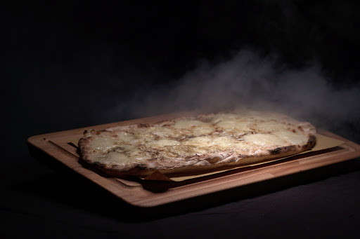 -1 white pizza with 4 cheeses, stracchino, mozzarella, gorgonzola, brie