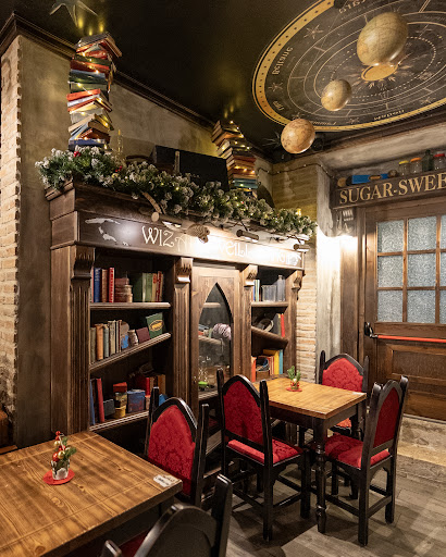 The Harry Potter-themed ambiance is truly captivating, with meticulous attention to detail. It feels like Hogwarts. Guests are greeted with lemon-based aperitifs contained in a small cauldron, like a potion—a truly original idea. Afterward, we ordered two cocktails with mortadella and pistachio cream fries. They were very good, and the potatoes were of high quality. We didn't enjoy the cocktails. The sandwiches and desserts, on the other hand, were lacking in flavor. The quality of the ingredients should be improved, or perhaps it was just a bad night in this regard. A suggestion would be to include more gluten-free and lactose-free options on the menu. These intolerances are commonplace these days, but the menu offers very little choice. We were served by a waitress who was very knowledgeable about the ingredients and the intolerances present in the dishes. Prices are slightly high.