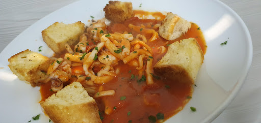 It's located at the Fiumicino dock, where they've recently created a lovely pedestrian area. You'll pay €40 all-in, including drinks, but how much do you eat? Truly a great price for everything they serve and the quality of the products. The menu includes various appetizers, a mix of first courses, and fried fish. The seafood risotto is among the best I've ever had.