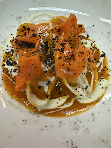 A small osteria in the Florentine hills, near the town of Certaldo; a picture-perfect panoramic view, a menu rich in choices, yet not overwhelming enough to confuse the diner. The place is clean, with a cozy and refined dining room, polite and friendly staff, and beautifully presented, rich, and flavorful dishes. We left feeling full, sharing a starter and a main course each. Don't forget the Super Tuscan wine to enjoy with your meal!
