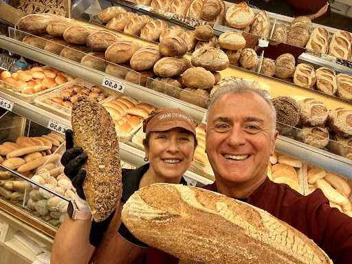 We bought a whole wheat loaf with seeds, but I wasn't entirely convinced by the quality and consistency. After cutting it, it was light and the crumb dry (improvements? - we didn't see any seeds).