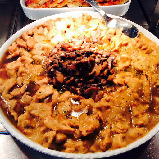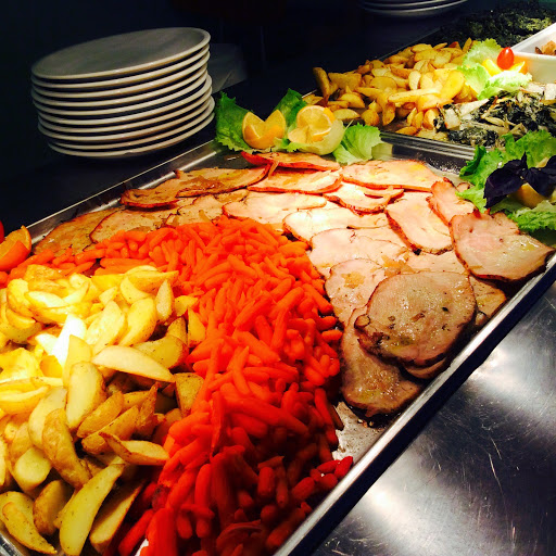 Management changed, food with more beef, choice of four first courses and two second courses, and two hot side dishes plus cold second courses. Dessert on Thursdays. Good for lunch breaks.