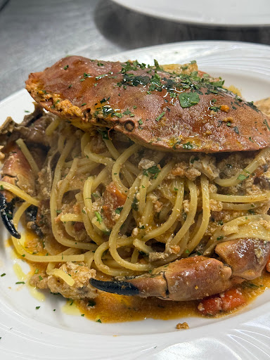We had fresh Ricotta cheese with honey and almonds, mozzarella di bufala and the fried calamari and shrimp as a starter and it was all delicious with our beers and wine. For lunch I had some sausages with romanesco done up with olive oil garlic and crushed red pepper, my partner got the swordfish, with roasted dandelion greens and my parents shared a fresh crab pasta, everyone enjoyed, the staff was very friendly and warm, would highly recommend.