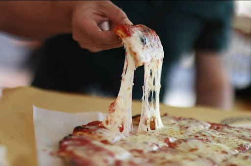 Margaritas pizza good sauce, cheesy, and crush to die for.