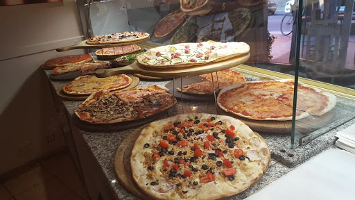We went there on a Sunday evening, arriving early (around 7 PM) when there weren't many people yet. My wife and I were there with our little girl (2 years old). We wanted a quick pizza because we were passing through and had to get home (an hour's drive away). While we were looking at the menu, the lady at the counter suggested we look at the more comprehensive paper menu. Once we'd chosen our pizzas, I wanted to ask them, but they realized we were eating there and told us to sit down and they'd bring them to us. The waiter came to serve us, but we ended up wasting much more time and paying the cover charge (which also included the child), while at the tables nearby, people were eating pizza from the counter as normal, just as we would have liked. We were a little disappointed by this, because it didn't seem entirely fair... We wasted €6 on placemats and cutlery that we could have done without, not having asked for them, an amount that could have easily bought two more slices of pizza. Maybe it's an organizational issue: either the tables are for "set" dining or for people to lean on and eat their purchased pizzas, it's understandable...