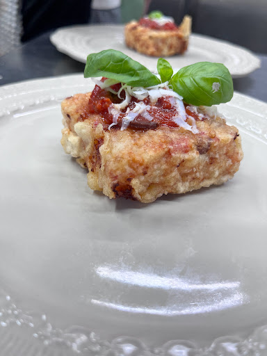 1 normal size croquette with melted pecorino cheese on top €3.50