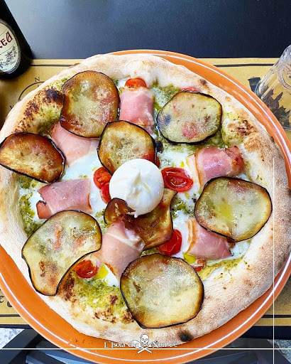 Honestly, at first glance, I had low expectations. Upon entering, it truly feels like stepping into the galley of Captain Hook's ship, and the first step is through the kitchen and then into the first rooms, with passages that narrow and then widen just like on a ship. We sat in the furthest room—I think the smallest, but the most comfortable, as it's very far back—except for the crew, who serve you with friendly speed. They're practically immersed in their ship, and like cabin boys, they carry out their tasks with seriousness, speed, and full immersion in their characters. I don't know if this is intentional or if they really are Hook's crew. Let's move on to the food. I personally ate a gigantic puccia with hamburger. Phenomenal! I've attached photos, you can judge for yourself. Then I tried some pizzas, which were also delicious. Crispy, perfectly moist in the center, full of our choice of toppings, and the dough was GOLDEN—I've told you everything. It also has outdoor tables on the main street of Monopoli, but I recommend sitting inside and wandering around the rooms.