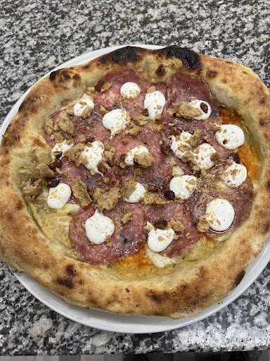 Thanks to a promotion offered by a driving school, we discovered this place. I was impressed by the kindness and helpfulness of the staff. They welcomed us with a complimentary aperitif. The pizzas were fantastic. The crust was crispy, well-cooked, yet still well-risen. The toppings were generous and well-distributed, with top-quality ingredients. It's best to book if you're going with a group. We'll definitely be back soon.