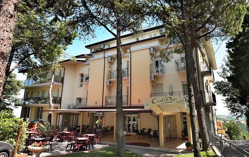A hotel nestled in the green hills between Riccione and Cattolica, about 15-20 minutes from the sea and Rimini city center. We stayed on a bed and breakfast basis at the end of June during the Pink Night festival, and it was an excellent choice both for the very reasonable price and the tranquility. The beautiful outdoor garden, where you can enjoy breakfast, features hammocks, swings, and sofas, and there's a fantastic pool on the terrace with panoramic views of the valley and the sea.