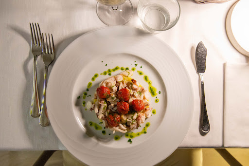 We had grilled calamari with radicchio for lunch, which was truly delicious and flavorful. However, the octopus appetizer with mashed potatoes and confit cherry tomatoes was cold and undercooked, even though I'd asked for it to be well done. The focaccia bread offered could be improved; the one underneath seemed stale. Overall, I recommend it!