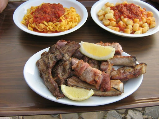 The restaurant scores highly for its location; I would have never known how picturesque the little town of Novilara is. But then my cardinal mistake: I hadn't made a reservation! When I left, there were still plenty of tables available, but I had to eat inside (in summer!) and was only given a glass of water with my wine. It was down-to-earth, decent food at reasonable prices, but I really don't know if I'd subject myself to that Cerberus at the entrance again.