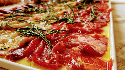 Pasta tomato (vegetarian not on the menu), grilled vegetables, baked fish, and roasted peccorino with honey. Early opening, ideal for tourists, but pizza only available from 9 p.m.