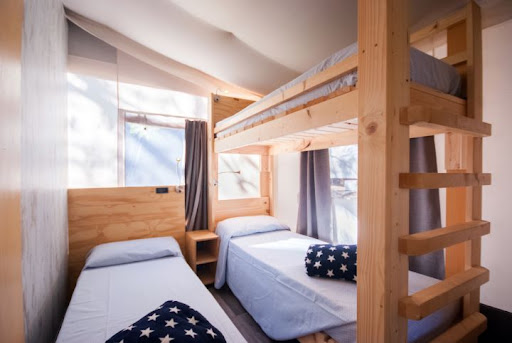 We stayed here for the long weekend of April 25th, three of us in an economy bungalow. As a campsite I must say that it is very beautiful, even if being on a hill it is an up and down walk for everything. When they accompanied us to the bungalow at check-in they told us that we could leave the car there to unload and that we would then have to take it to the car park. Too bad that in the end people always left their cars parked at the tailpipe. In any case, a nice campsite. The same cannot be said for the accommodation. The house is really small and dated. Three of us couldn't move and there wasn't even space for luggage, I can't imagine there were 4 of us (maximum capacity). The electrical sockets don't work well and as there is no air conditioning it will be very hot in the summer. Non-existent soundproofing. The kitchen is old but quite spacious and is located in an outside cabin. The bathroom however was nice. For the period the prices are good.