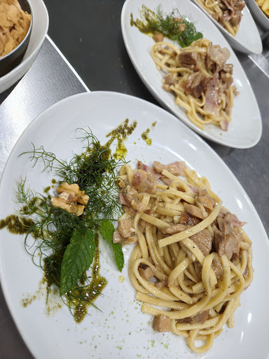 We decided to have lunch at this restaurant and I have to say it exceeded our expectations. The set menu is delicious, very generous, and the price beats the competition. The locally sourced ingredients are expertly prepared, the place is welcoming and clean, and the friendly staff is super kind and helpful. We had the appetizer, the strozzapreti with mushrooms and sausage, the scallops and porchetta with mushrooms, the fried potatoes, and the ricotta and pear dessert. 😋😋😋