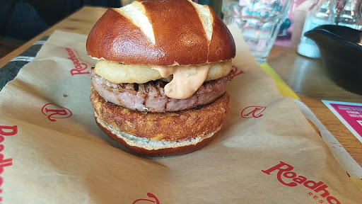 We went to the Roadhouse in Treviglio on a Saturday night, four friends and I, after a stressful and busy week. We really wanted to unwind over a nice dinner with friends. We arrived around 8:30 and the parking lot was practically full, but after a few searches we managed to find a spot. The place was crowded, but the welcome was quick and efficient: we were seated almost immediately and with great courtesy. We were immediately struck by the atmosphere: well-kept, warm, well-lit, with dark wood furnishings, an American steakhouse atmosphere but with a modern twist. Tables were well-spaced, good soundproofing, and we were able to talk without shouting despite the typical Saturday night commotion. We were also pleased to see such attention to cleanliness, not only at the tables but also in the bathrooms, which were tidy, stocked, and smelled fresh—a detail not always taken for granted.