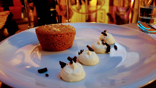 WHAT I ATE: I chose the tortelli filled with Stilton, a French blue cheese, served on a bed of pumpkin cream with raspberry drops. A very balanced and delicious dish. Next, a shin of patanegra (a type of ham) on a bed of mashed potatoes—it was simply delicious. The manager, on his own initiative, brought us a small tasting of Roccaverano robiola and Grigentana goat cheese with lavender honey—a true delicacy. For dessert, a crème brulee—perfect.
