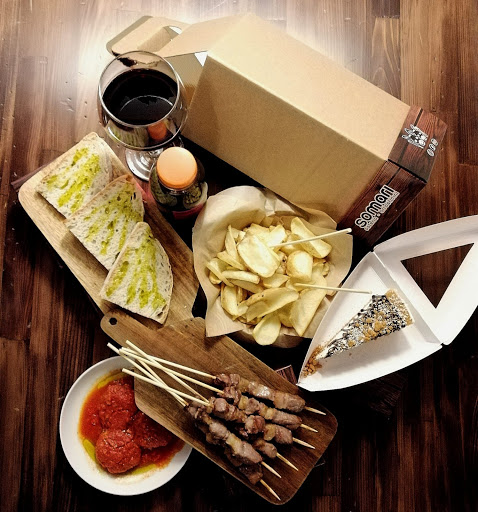 There were two of us, and we ordered: 1 portion of bruschetta with two ventricina slices, 1 portion of potatoes, 1 bruschetta with sausage, and then 5 handmade liver arrosticini, 15 classic arrosticini, and 10 handmade arrosticini, water, and a Coke.