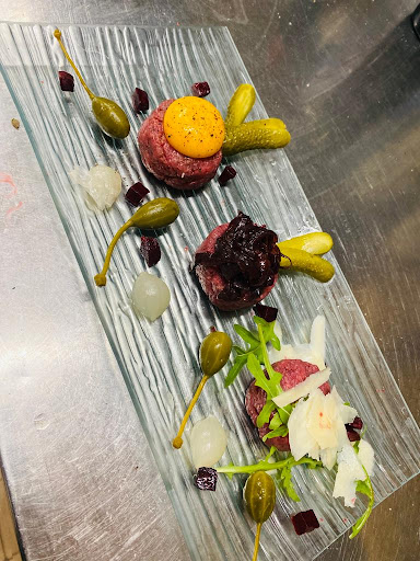 The menu offers a wide selection. We tried the crostini, prosciutto with melon, and steak grilled and cooked on lava stone, with a side of our choice of grilled vegetables. Everything was delicious.