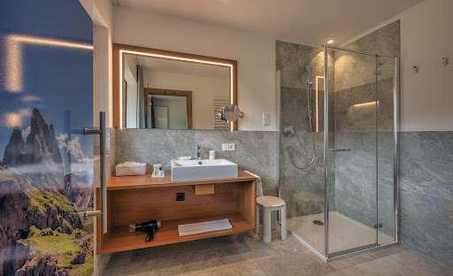We spent a wonderful time at the Hotel Stua Catores. In our beautiful panoramic room, we could see the mountains and the mighty Sassolungo from our bed as soon as we woke up.