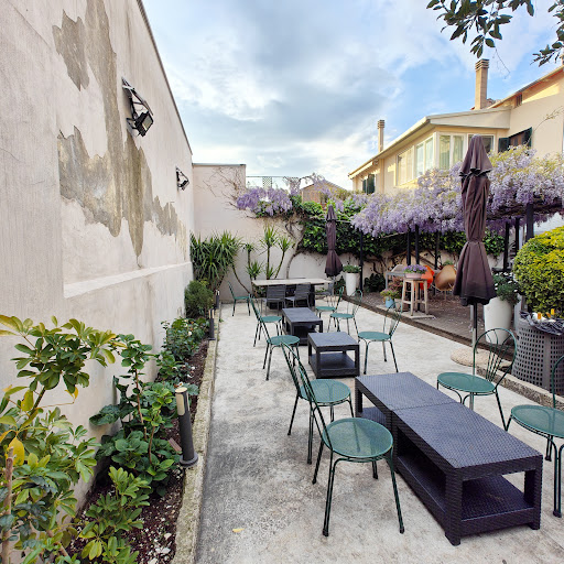 We sat at the outdoor table, and there were lots of cute cats; they were very friendly and welcoming.