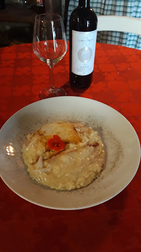 A small restaurant (reservations recommended), located in a historic building in the town center; parking is difficult. The food is local Tuscan cuisine, with some dishes (like carabaccia) drawn from historic tradition. The wine selection is limited. However, the food is good and the service attentive; you'll be fine.