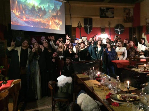 A great place for a late-night meal and a post-party. The food is good, the names are well-themed, and the service is excellent, very helpful, fast, and friendly. We spent a lovely evening with a very nice event. Plus, there are several themed nights. The beers are excellent, and very good. The atmosphere is very well themed, with various fantasy and pop culture themes. There are several seating areas both inside and outside. The free board games for patrons are a great idea, ensuring even large groups can have a great evening. Finally, the place lends itself well to a fixed or free menu, with shows and evenings at reasonable prices.