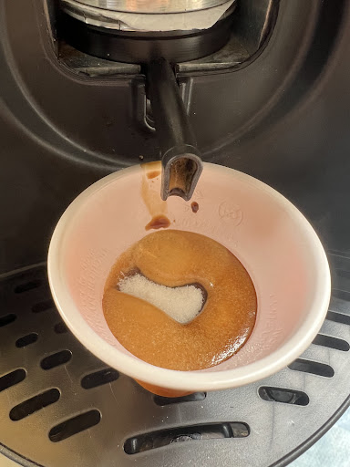 You can choose the coffee blend, and grinding it on the fly is a challenge these days. Available in various formats (pods, capsules, loose).